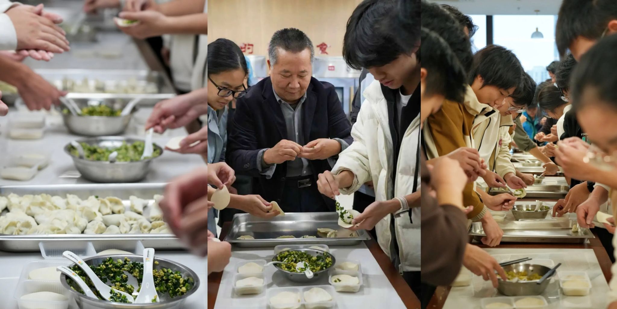 活动在欢声笑语中围绕两大温馨篇章展开。在包饺子环节,陈建群副校长、吴敏处长与老师们走入同学们中间,大家围站一起,亲手制作冬至的“团圆饺”。吴敏处长化身“技术指导”,耐心示范技巧,如同家中长辈般亲切;同学们则充分发挥创意,橙子馅、麦丽素馅等新奇尝试层出不穷,更有“饺子包饺子”的巧思妙作,现场充满了探索的乐趣与阵阵欢笑。大家一边手上忙碌,一边畅谈近况,老师们关切询问学习与生活,同学们分享备考心得与趣事,操作台前弥漫着家人般的自在与温暖。当热腾腾的饺子出锅,品尝自己劳动成果的时刻更是将气氛推向高潮。同学们兴奋地找寻自己的“作品”,王同学迫不及待地尝鲜自创的橙子馅饺子,而谭同学则因吃到内含“小饺子”的幸运饺而笑言“接下来一定好运连连”。小小饺子,包裹的不仅是美味,更是祝福、创意与惊喜。